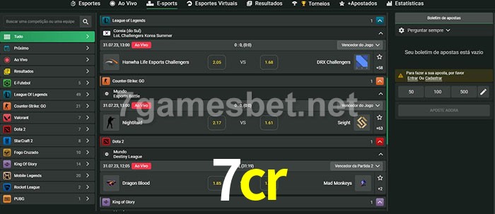 A aposta 7cr oferece aos jogadores a experiência mais conveniente de apostas em eSports!
